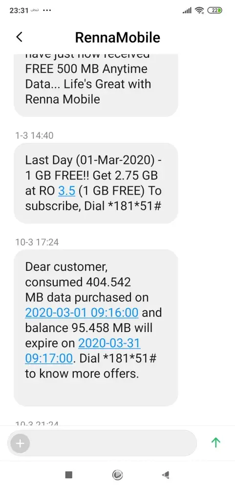 I took a net package of 1.25GB on 01 march 2020 at 9:17 AM back to back I got a congratulation sms of getting 500MB free... after 9 days I got message that I consumed 404.543B out of 500 MB purchased.. Initially I thouhgt some error message as I purchase 1.25GB.. then after 1 day it said all MB consumed and data is locked...