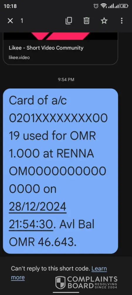 I got a transaction message from bank Muscat.