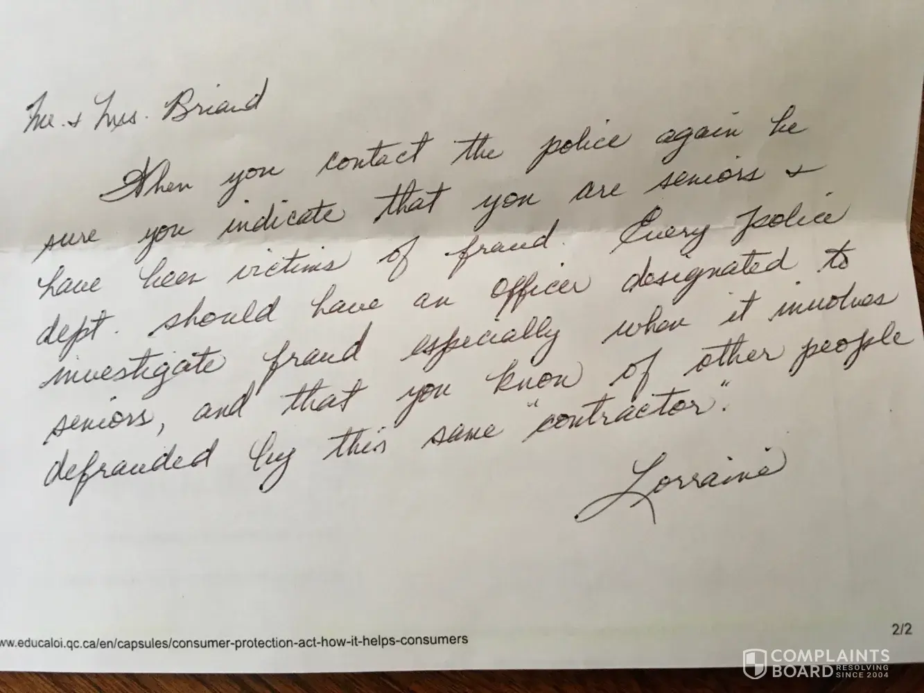 Created Ottawa police report but my expectation are not high reading all your comments. Yes 200 cash (for which he gave me “receipt†and “drivers license†and few days later $460 for material… anyway half of your cases looks exactly as mine.
