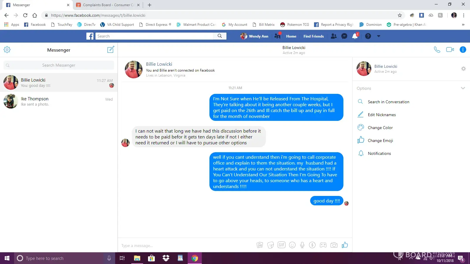 Verified customer This complaint was posted by a verified customer. Learn more