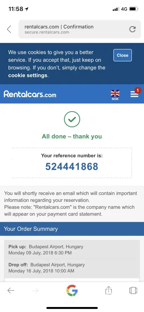 Having liaise with Rentalcars without successful resolution.