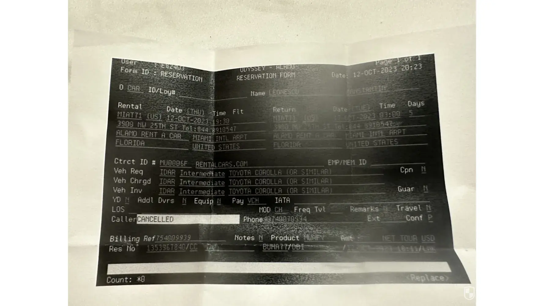 12.10.2023 in Miami Airport Alamo cancel my reservation.