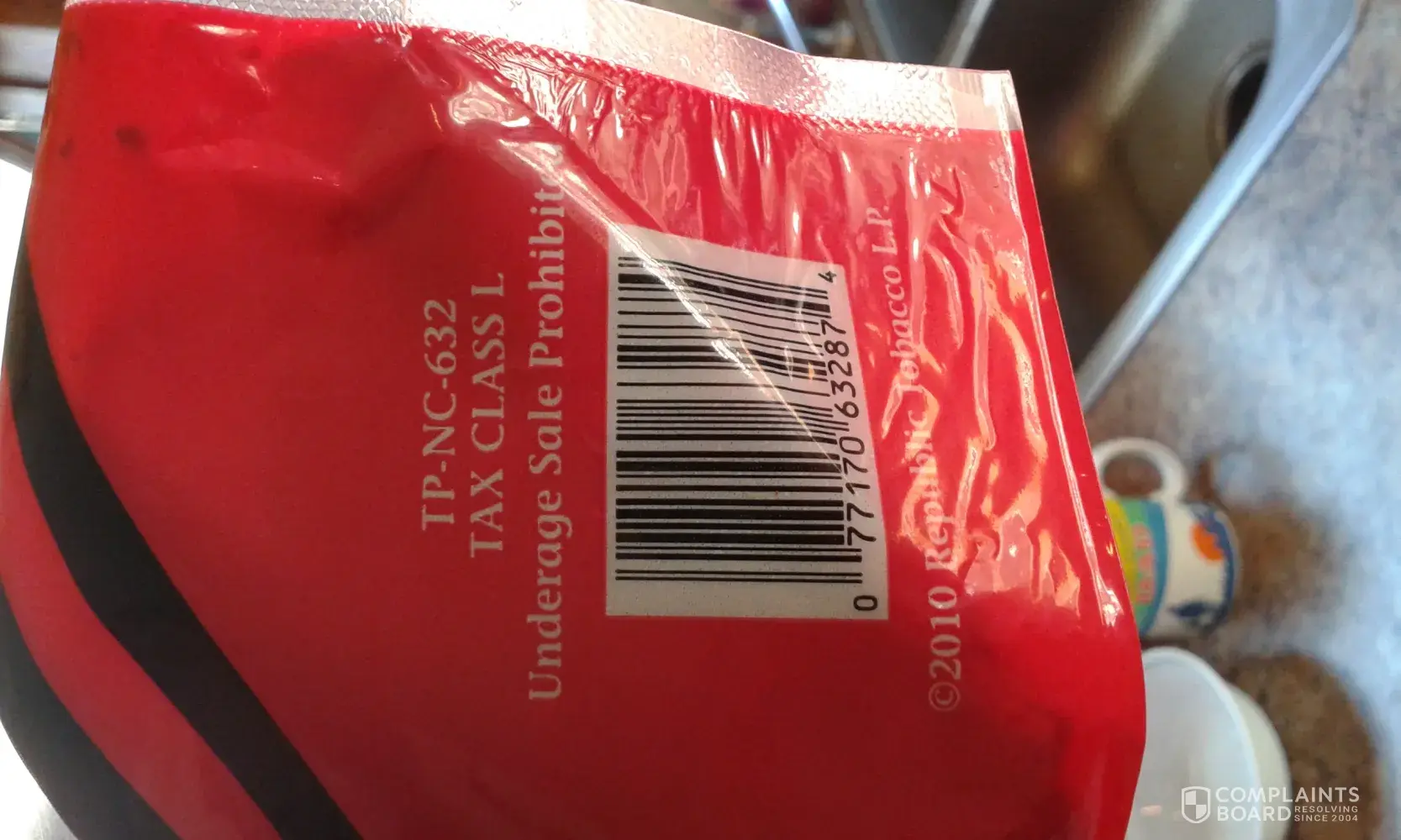 What i would like to see as a resolution, Hold yourselves accountable. Make it right. If you would like to refund, we spend approximately 65.00 per month on your tobacco. Every month. FYI the bag number is TP-NC-632 the UPC is [protected] for the object found this morning, and the in the picture the bag number is in the picture below. I also attached this mornings foreign object paper thing... im using the cigarette as a pointer.