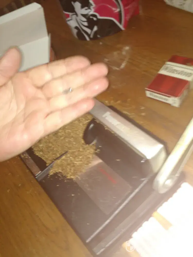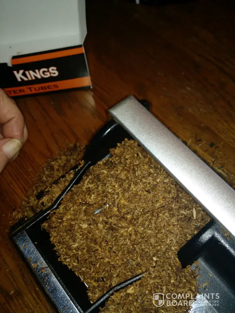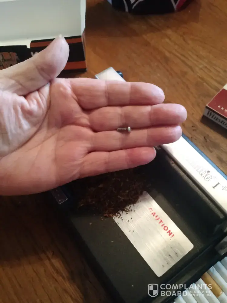 I was rolling my cigarettes this morning and when I poured the end of the bag on my machine a screw fell out of it.n ow I'm concerned that there may be metal chips in my cigarettes I have rolled. I am throwing away all of the cartons I have rolled with this bag. what a waste of time for me. Very disappointed in republic tobacco. If screws falling out of machines this should have been checked and dumped.