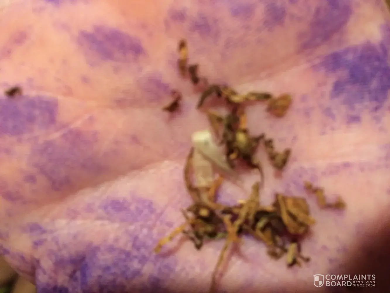 I bought it from will not return this bag and I have found bugs, yes real bugs in three bags now! It's disgusting, I've obviously been smoking them, ugh. I've never even seen these types of bugs, they have hard pointed and sharp bottoms or stingers and one even stabbed me on my toe, before I swept, I must have stepped on it when I wiped the tobacco off the table. I want something done about this and I'm seriously considering suing the company! I mean who knows what I'm inhaling by smoking this! Not to mention it's so damn gross! I'm definitely taking my business elsewhere.