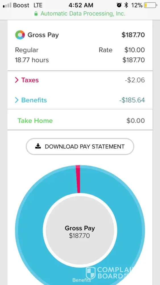 Now I'm a mother of five so you can imagine every penny counts. This is a mistake that can be fix but it's unacceptable to keep happen repeatedly. HR said it will be fixed lets move forward but eight months ago The same thing happens and not got fixed but I never got paid my money back to me then and now we're here again so again HR says it will be fixed but I may not get my money back. Really because of mistake of not reporting the Accurate information from there doings? My check was for $ 187.70 benefits took $185.64 taxes taken were $2.06 And I took home 0.00 and because I didn't work enough hrs I owe in money! What would you in this situation ? See my attachment of my check stub. A single mother of five ! Don't just keep fixing it ! Make sure it does not keep happening ! And Pay me my money back! Maybe then HR will report the information currently!