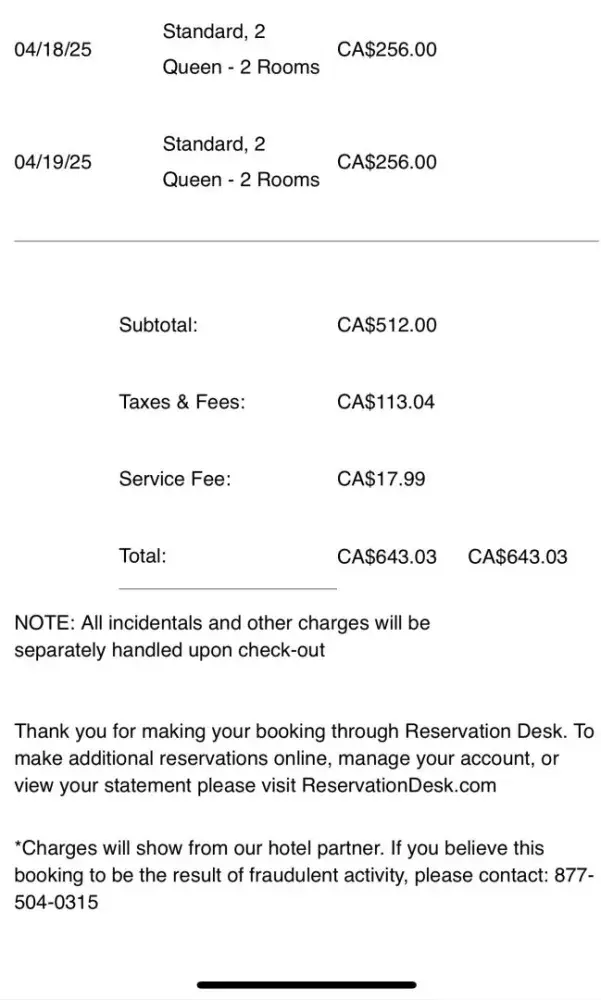 Read full complaint and 1 commentHotel booking through ReservationDesk.com (third-party booking site)