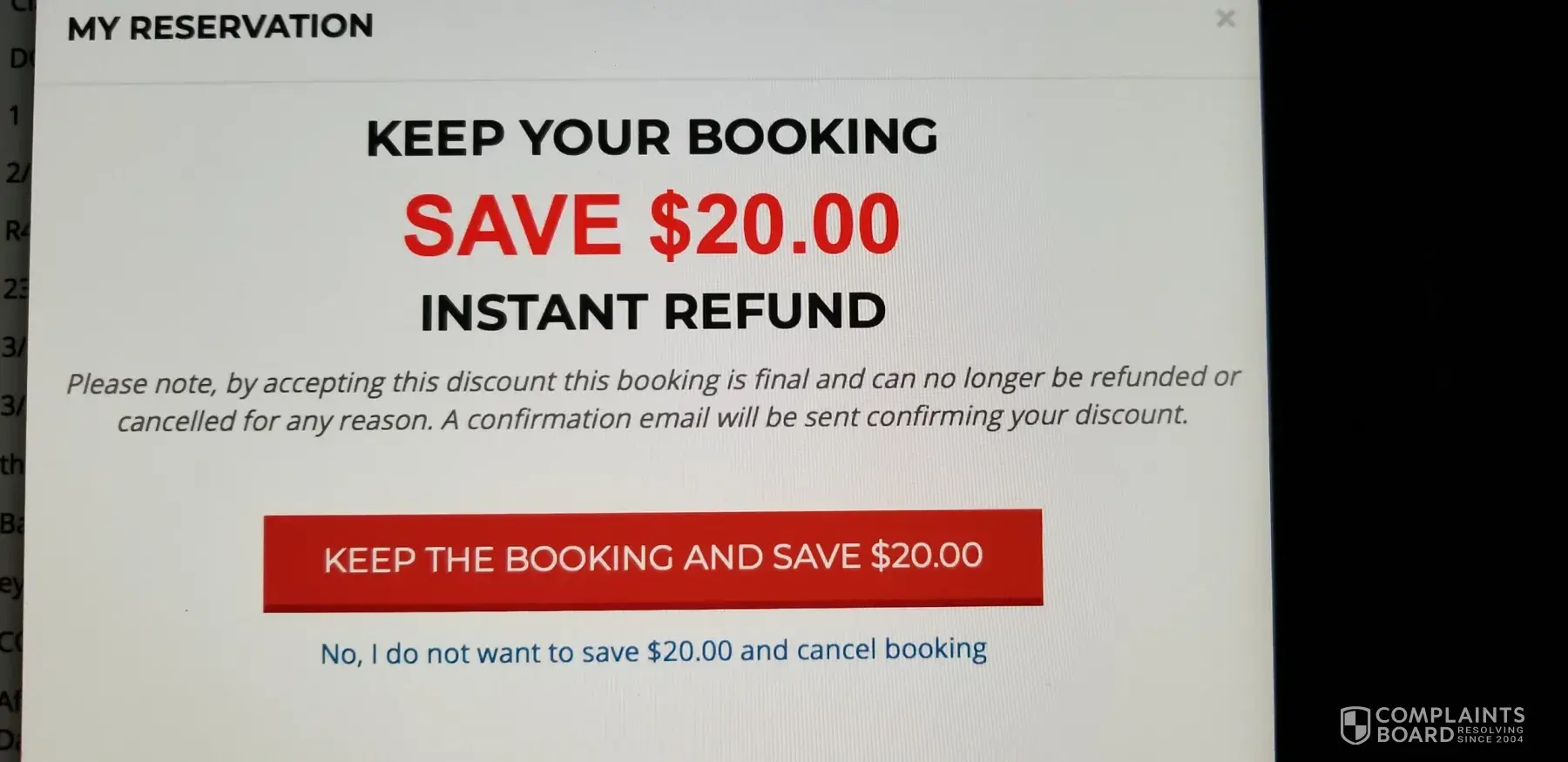misleading reservation site