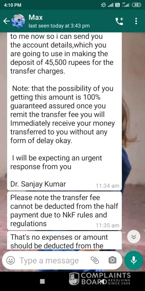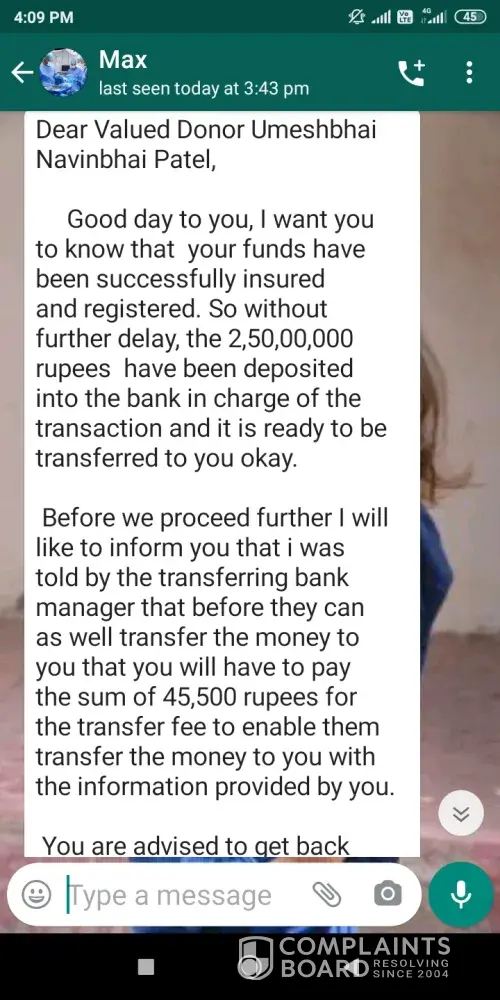 To credit your account immediately you will have to send copy of your Pan/Voter card, and one picture of your passport size for file record, This is according to law assigned and the security covering your fund from the source The assigned transfer department don't have any right to DEDUCT from your fund because it's made to reach your account in complete Value. We decline for 5 working days after date of receiving this mail.