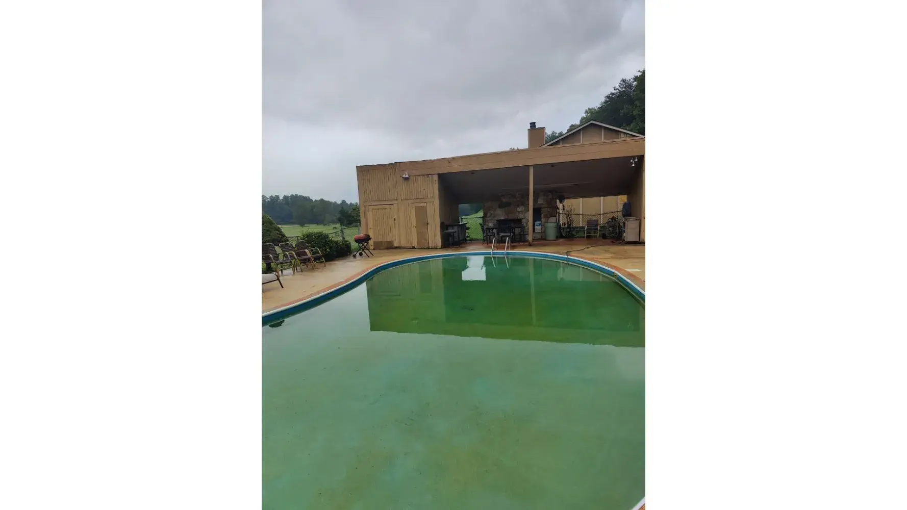 This is the worse resort I have visited in my 30 plus years of using time shares. Where do I start? I will provide pictures as well. As I try to find the check in, which I finally found. They actually live in one of the units with about 10 other people. It looks deserted. Pool was filled with green slime, lady said they have not had a chance to vacuum it. It actually needs to be drained and reserviced. It looks like a pond, I was surprised not see frogs or snakes. DISGUSTING! As I walk to my room notice door bell ringer broke, out door lighting wires exposed. Once inside dirty stained chairs, ceiling water stains throughout, kitchen outlet not working, an old television outside on the lower patio, also another one in master bedroom. Front curtain where tied together, so you where unable to open them. Stained carpet throughout, drywall patch work through out. Beds were like sleeping on a rock, pillows were flat. Electrical outlet in the kitchen and spare room not working. Sheets torn, shower head needs updated. Overgrown grass, dead bushes needed pulled out. No tvs in spare rooms.