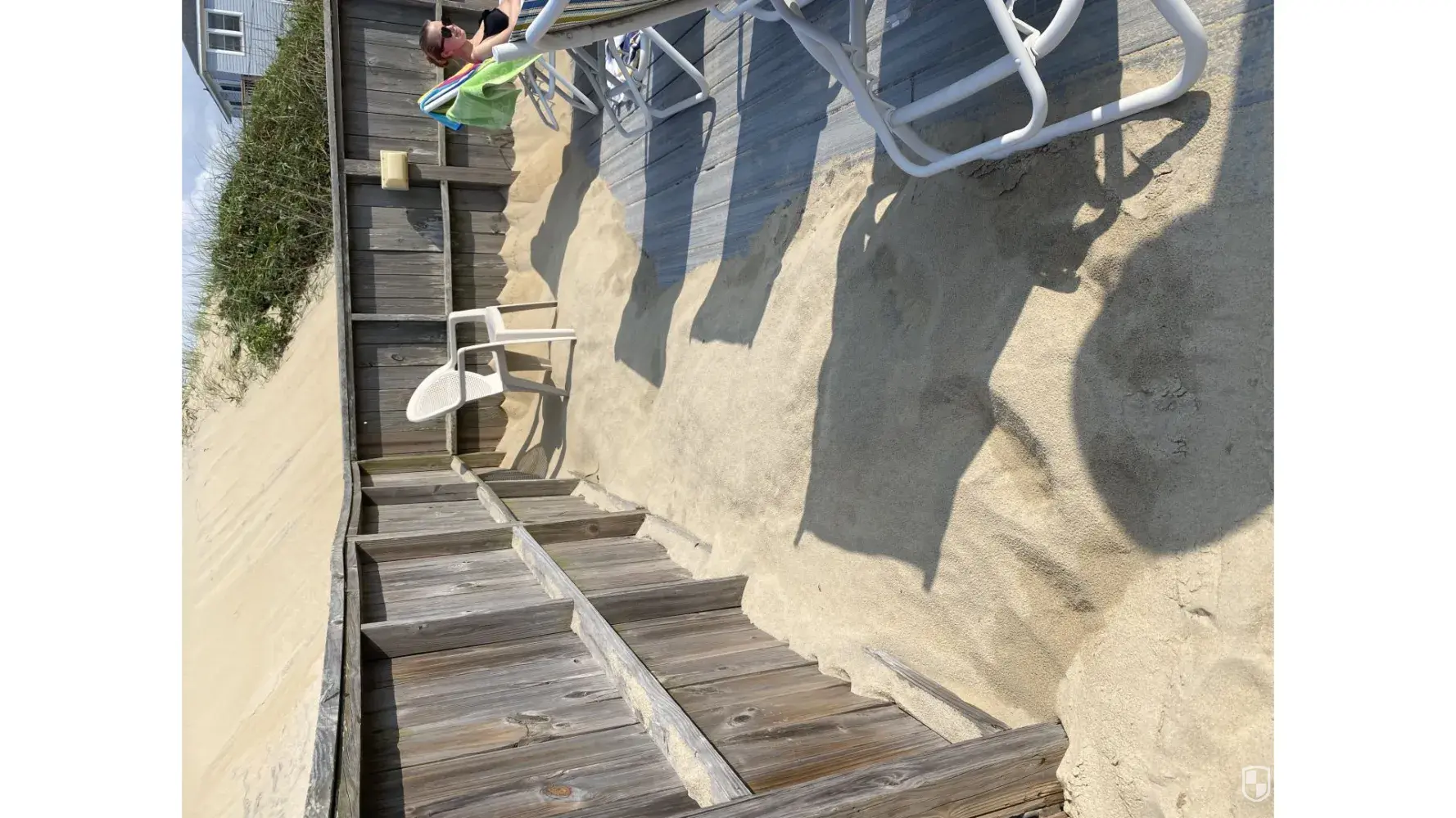 Before our arrival, we had been advised by Resort Realty that the concrete driveway was damaged due to a previous storm, and a narrow strip of rocks were spread over the sand to provide vehicle access. Despite the warning about driving off of the rocks, as cautious as I was, I still got our vehicle stuck in the sand and rocks and paid $150.00 service to remove it.
