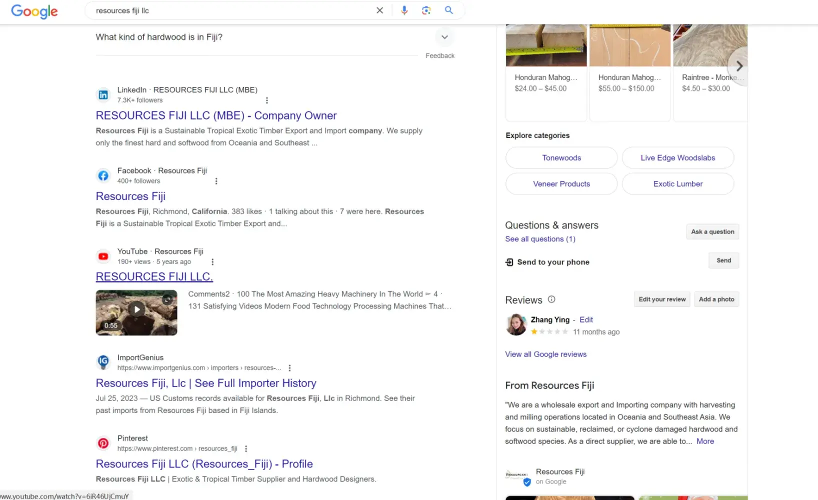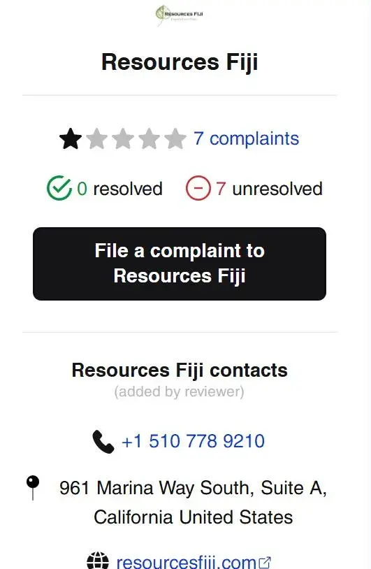 Resources fiji llc, The man named Eli Drake, lived in California, doing Paciffic timber from Fiji, He is a middleman in this wood business, without Cash flow, Office, sawmill.Only hunting customers online.be aware when he trys to ask you for any deposit, Expose Again, just hope no more victims.