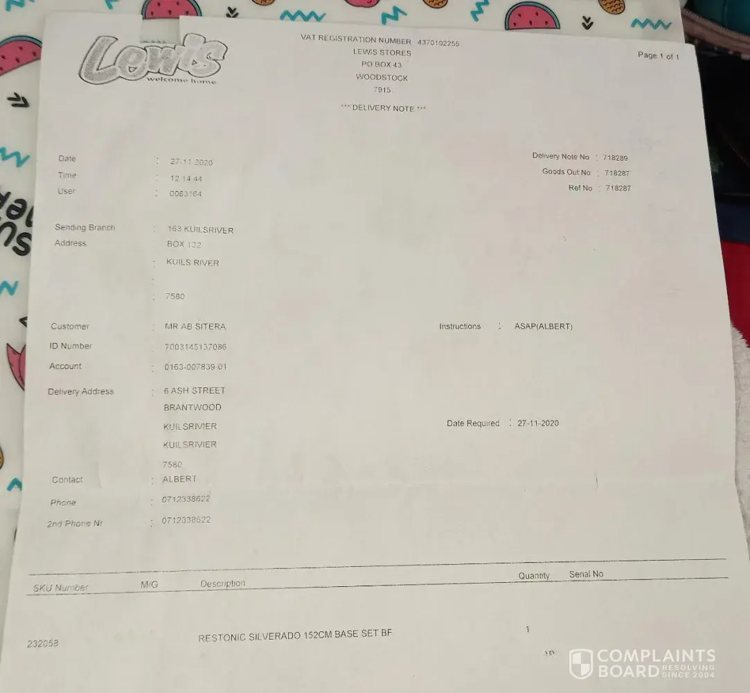 I laid a complaint on OK furniture last week Tuesday and the supplier response is that they cannot help me in terms of comfort.