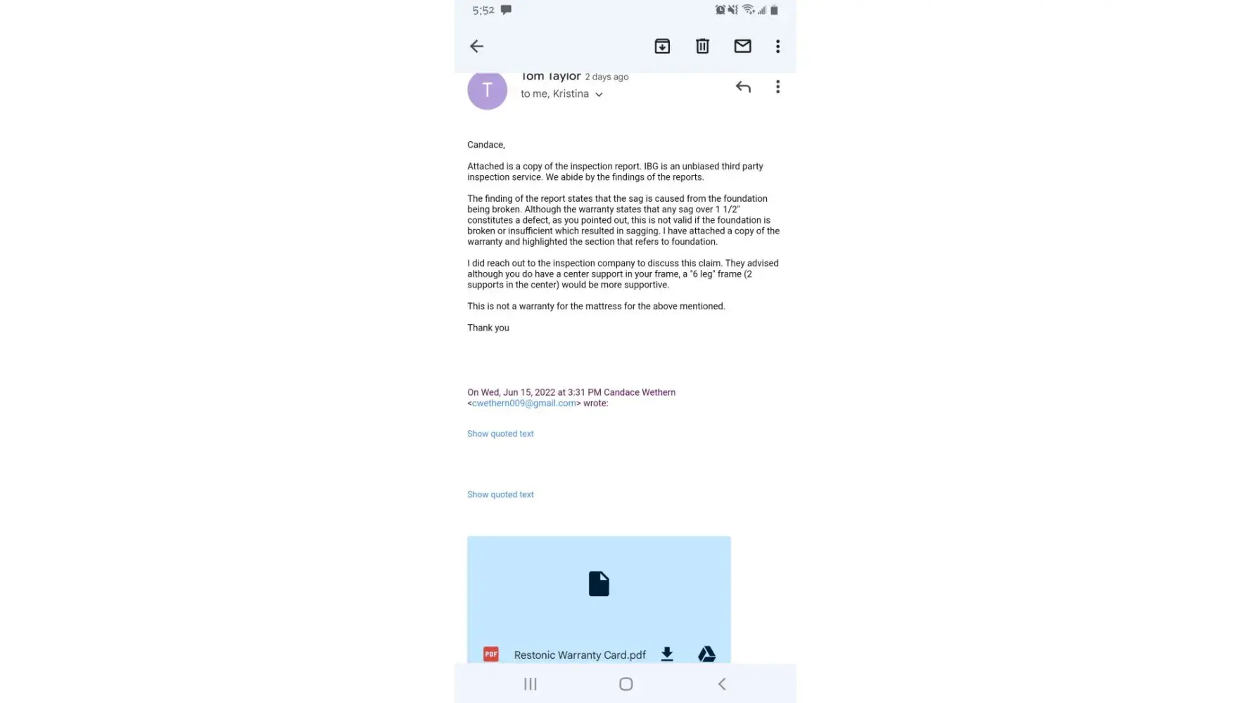 restonic/warranty /bad california manufacturer customer service