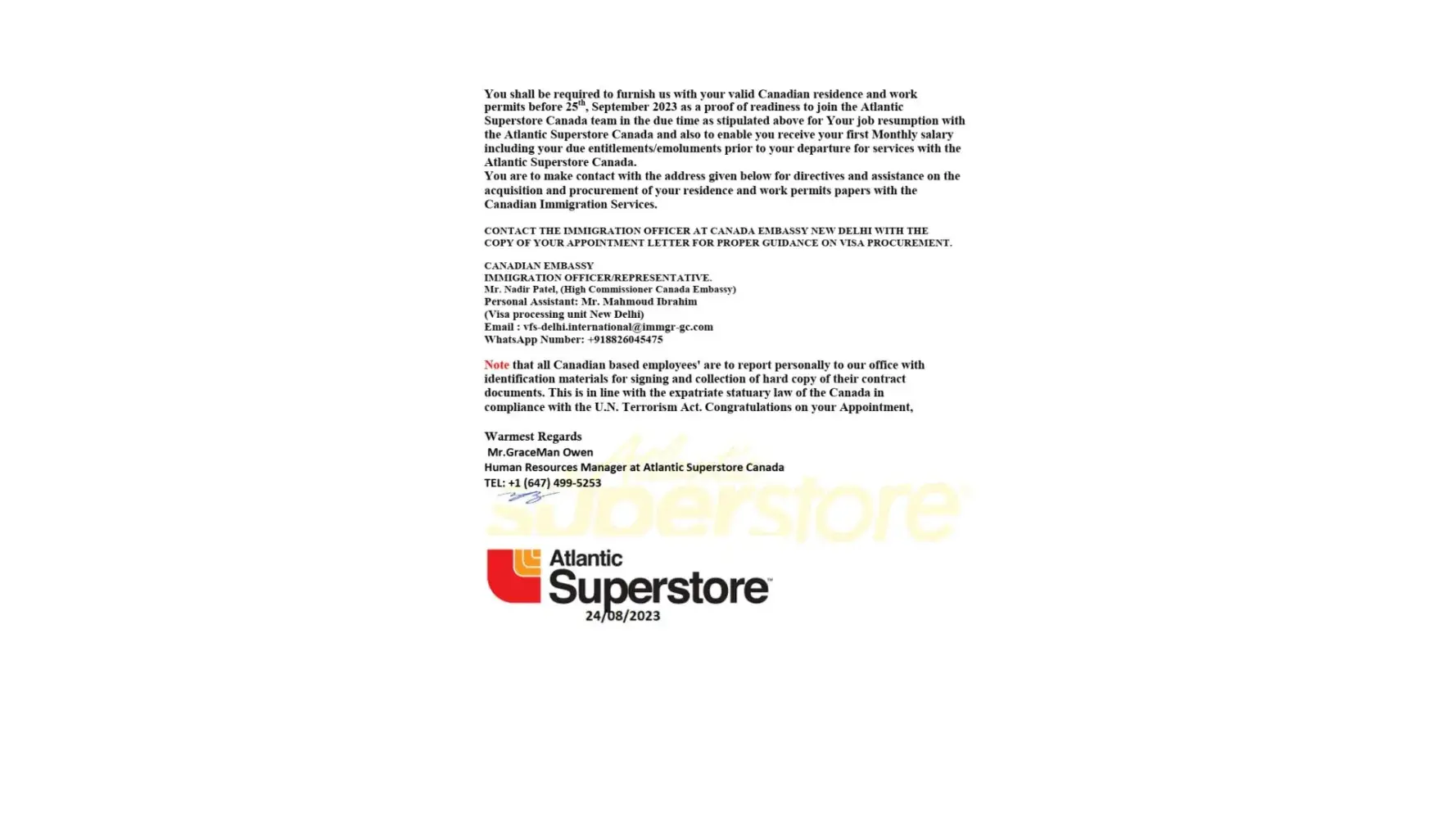 Read full complaintAtlantic Superstore Canada - Atlantic superstore job offer letter/ appointment letter