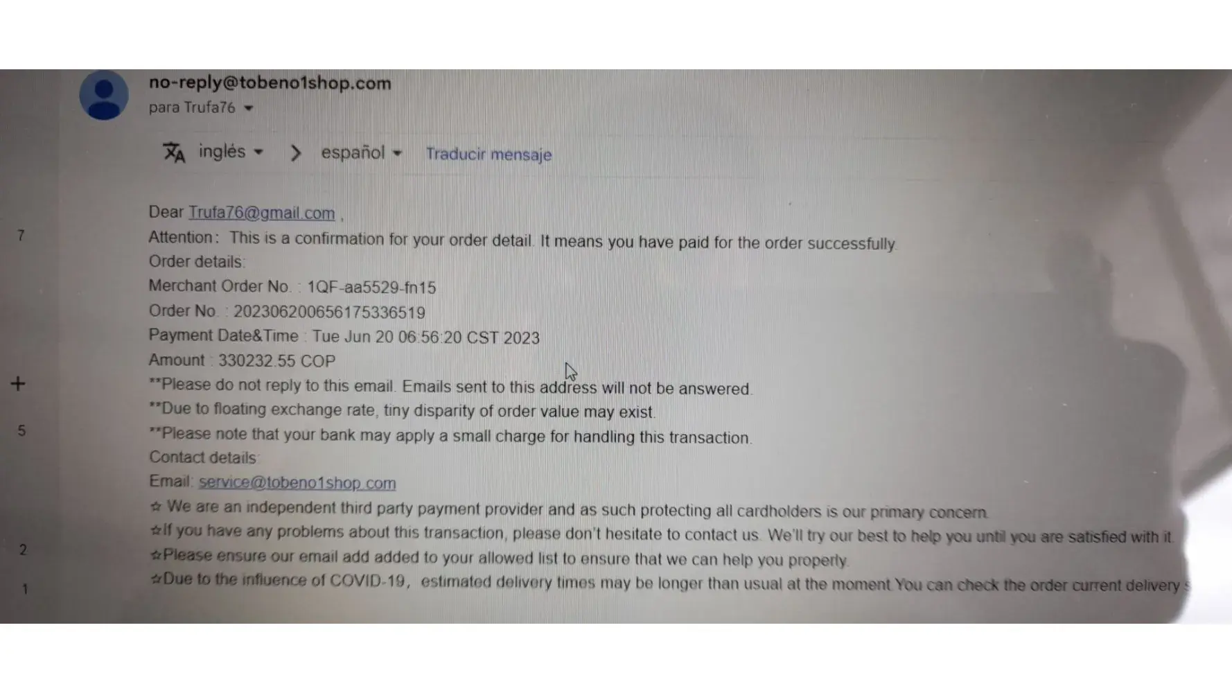 Ya no aparece el rastreo del producto Hoy recibà un producto barato que yo no pedà Es como si se burlaran de la estafa que están cometiendo Por favor tienen mi dirección y número de teléfono Más la tarjeta de crédito Voy a llamar al banco para informar lo sucedido Gracias