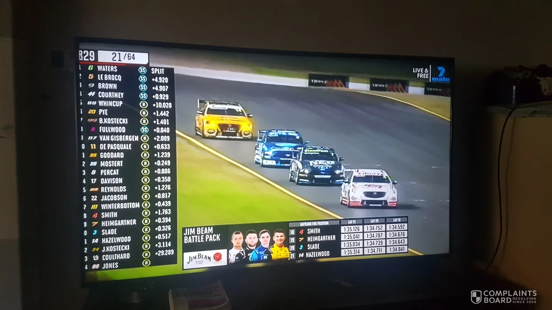 I seen complaints on face book and twitter complaining about the position board that 1 hard to read 2 is partially off the screen 3 the car numbers on this position board some you can't even read and 4 takes up almost quarter of your tv screen we want to watch the race no have the position board sitting on the screen for 3/4 of the race blocking our view please have a think about this and run the positions back at the bottom of the screen every or clear the image ant flash it up for 10 sec every 2 or 3 laps