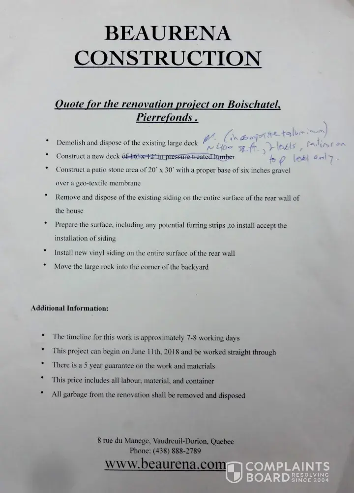 Beaurena and owner, Paul Cressaty were engaged to do our backyard deck renovations. . In June 2018 he started our old deck demolition and new deck installation. He constantly asked for money upfront, he showed up sporadically or had kids come and work for him. He was hardly ever there and he never listened when he was there. He botched up a job because he...