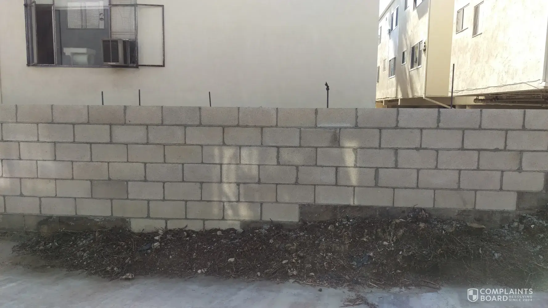 [edited] did nothing about the collapsing wall, finally Housing Community Investment Dept Los Angeles (hcidla) sent an inspector out, slumlord chopped the tree down but left this pile of trash here for months. Sawdust and branches & dirt flying everywhere, they don't care if tenants get sick including disabled seniors.