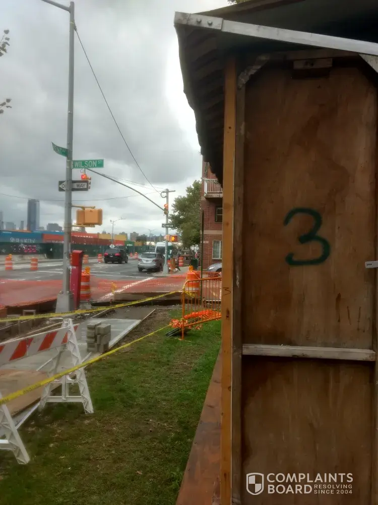I live on the corner of Kent and Wilson St in Brooklyn, and I know that they are doing construction on the side walk, but my first floor tenants April Gentle and Mr Rubin has the Sukkah still builded up. I thought this was temporary for the Jewish Religion Days, but it seems like they are not removing it any time soon. I called: Brooklyn Villas Condominium at [protected] ext 135 at All Care Management. I informed them about the situation and they agree that it shouldn't been up for so long. She stated that she will inform her Boss, but that was a week ago and still it is up. Can some one help?
