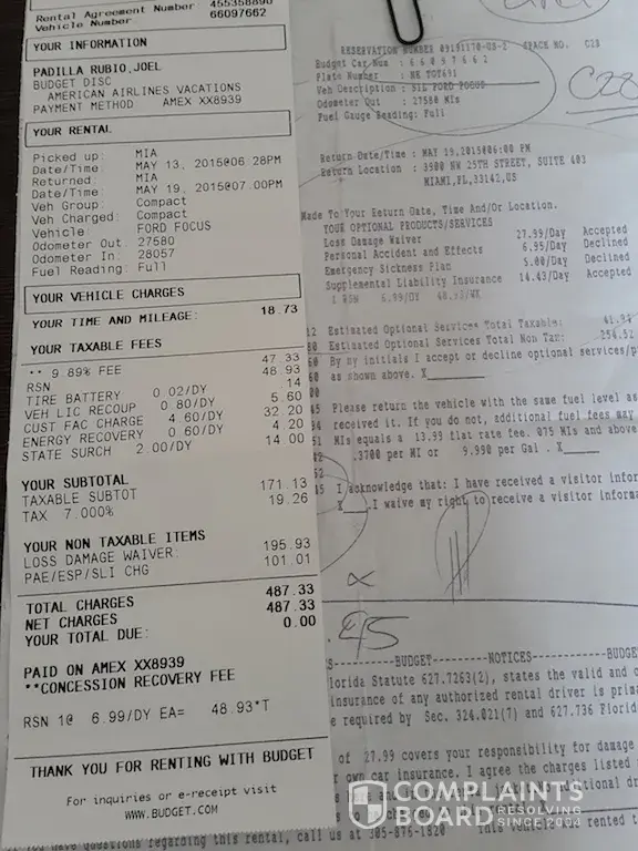 Budget is a complete fraud, worst experience of my life renting cars. It was already pre paid with my AA Miles, they said it was obligatory to pay for the insurance fees and there are several hidden fees. If I use the page to buy the car rental the price for a week with Fees and taxes is only $188.00 and total Price with the insurance coverages is $516.47, I paid in cash $487.33, only $29.14 were paid with AA miles, It's incredible. One of the problems is they billed 7 days, when I had 6 days agreement, I accept I returned the vehicle only 30 minutes after the limit, but the person who received told me there were no additional charges.