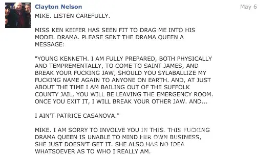 Burt, these things all played out at the same time. Here is another example recently sent to me by a very innocent and talented hair and makeup artist who was also harassed and threatened by clayton nelson. Look and read for yourself. He is a bigit, and knows he is a criminal and here is written proof. He does not care if he goes to jail because he is a sociopath! Beware clayton nelson photographer in new york and pa, he is a criminal and a bigit.