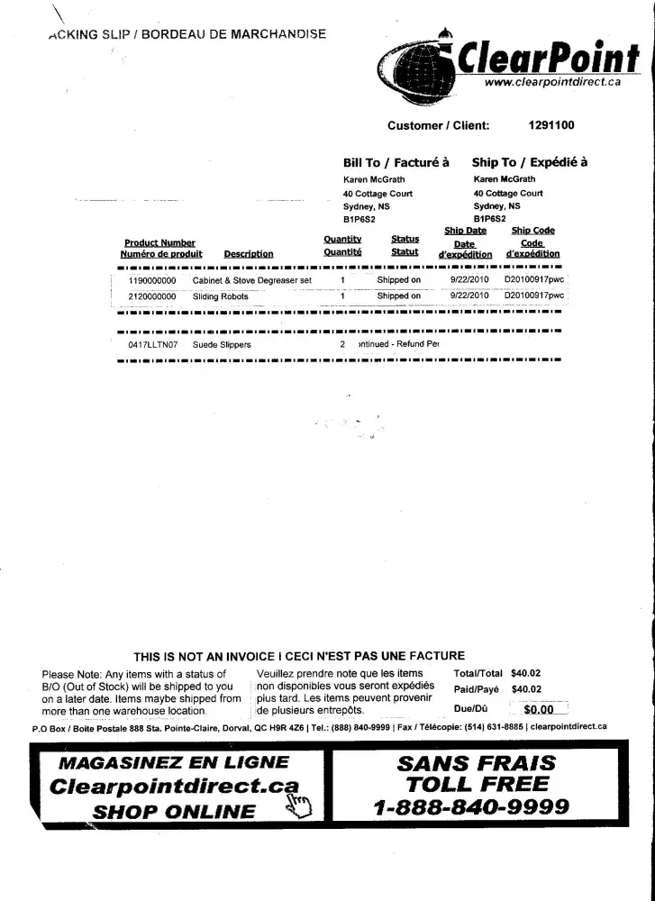Ordered two bra's from this crooked company How can they continue to dupe the public. Where is the consumer protection agency? I ordered the bras and Clear Point Direct cashed my check. We need to contact the Canadian Government and issue a formal complaint against this crooked business.