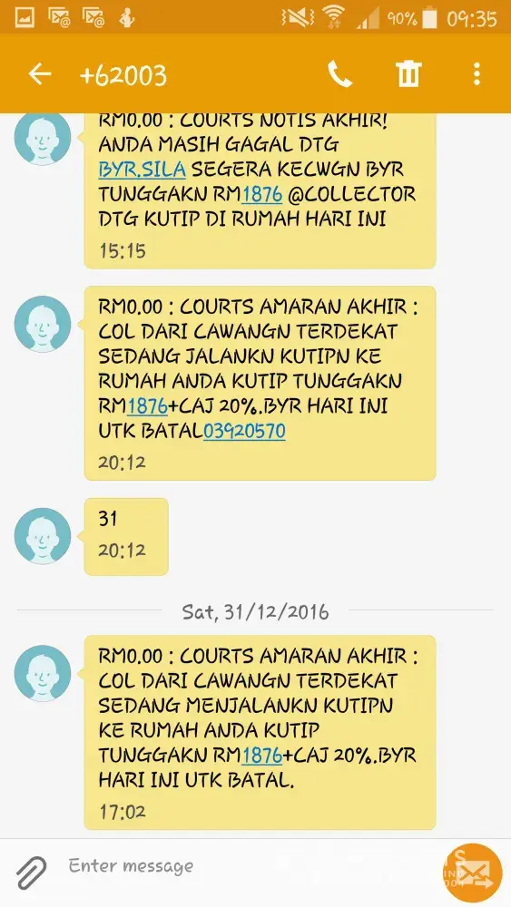 And in the end Courts bring this matter to a very rude lawyer [protected] Sulaiman lawyer firm) to threaten me that if i do not pay up the full amount,