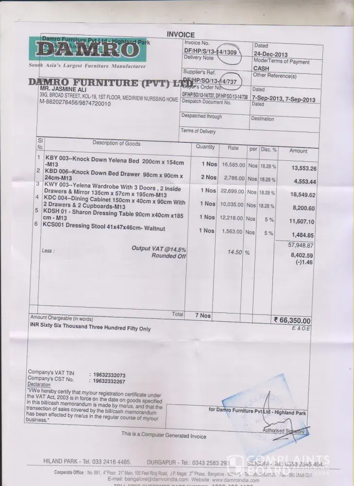 DAMRO FURNITURE PVT LTD unethical behaviour