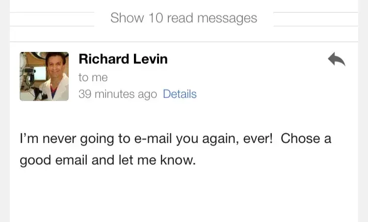 I am not sure how ppl can say that others experiences are lies or false. I just had my reversal done last month, I would not recommend Dr. Levin to anyone. He was very rude, I read previous reviews about his bed side manner and ignored it. Prior to surgery he told me I wld Be good with a bikini incision and then changed it the day of, to a mid line cut and stated that I can either take it or go home and cancel everything. I asked him long before I cld drive, only bc my husband and I Cldnt recall what the paper said and were debating, Dr Levin rudely responded that he can already tell that I’m going to be a horrible patient and this is going to be a bad case! I might as well call the surgery off. That was easy to say once after we had already paid, and paid for flights and took leaves from work so we proceeded. I had several questions after the surgery because the wound has become infected. I sent 9 emails from my gmail, but for some reason one of his responses he sent to another email that I contacted his office on months ago, so I let him know that I didn’t receive his last response, his response was...I’m never emailing you again. I’m upset all over again by the way This man has treated me. I’m starting to think he may be experiencing a decline in mental health, he is a lot older than the pic he has on his website. I wish that I wld have listened to the other reviews! I have attached pics and also other reviews, and after reading these comments and more. He did a horrible job with my incision he was over booked the day of. I have posted pics of the email, and others reviews. I can also post pics of the incision the day of surgery.