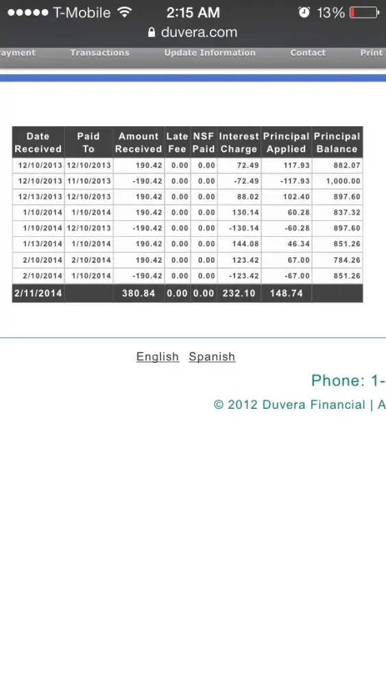 My credit card was compromised online so I had to get a new credit card from the bank. I emailed and called Duvera telling them of the situation, so I was going to pay through a bank check or cashier check. I asked for them to send me a paper copy of the bill so I could do it automatically through online banking or check and know what I was paying. I didn't receive anything in the mail for first week so I contacted them again, and waiting another week and still nothing. Finally three weeks later I receive a collection notice from their department saying I had 30 days to pay the whole amount. I calleD the billing department for the guy to tell me the exact same thing. I have all the emails still showing my requests for a paper statement, and I get told in the phone that I need to talk to a supervisor that won't call back. Horrible experience and will NEVER work with them again.