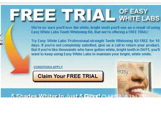 This is a complete scam! After the trial, Easy White charged my card $85.18 for the next shipment and then another charge for $85.18 posted to my account 10 days later under the name Tooth White. When I called to inquire about the charges, the customer service rep told me the charge was not showing up in their system and I should wait two more days. I called my bank to ask for a phone number for the company that made the charge and surprise, surprise when I called the number, I was connected to Easy White Labs. After demanding to talk to a supervisor, I was told it was all just a huge coincidence. That there are millions of teeth whitening companies that all charge the same amount and then banks attach random company phone numbers to these charges. Would anyone believe that story?!?