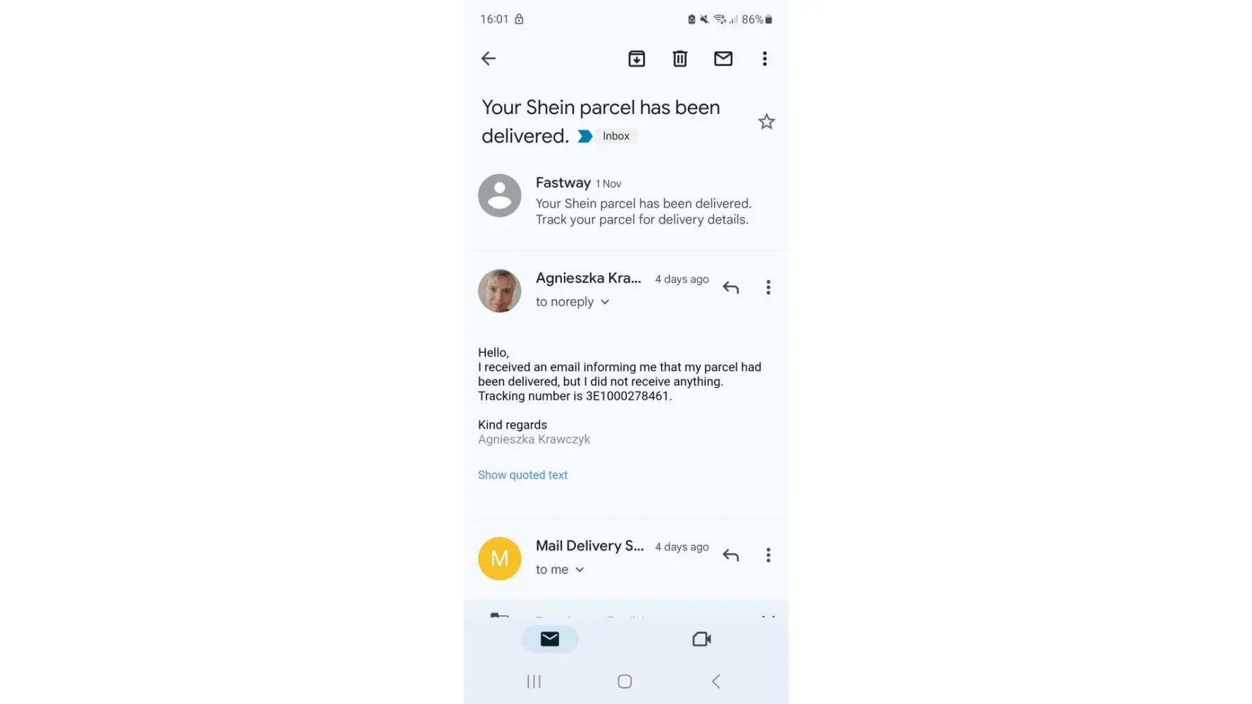 Delivery not received