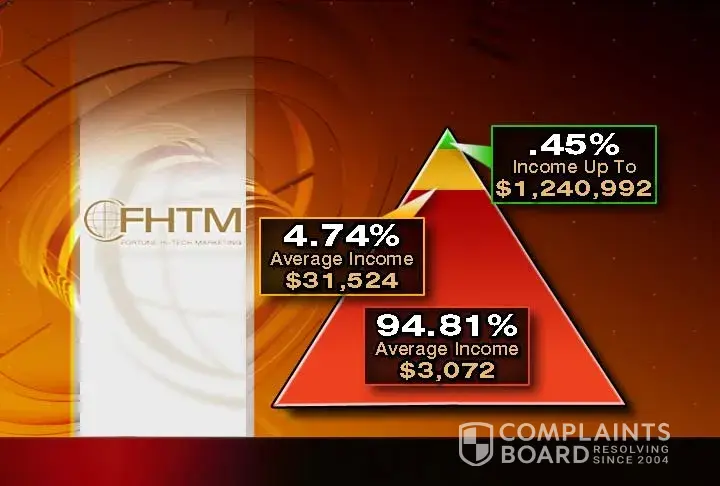 FHTM was also forced to produce (one time only) an income disclosure statement (“IDS”) which according to industry expert, Robert FitzPatrick who is the President of Pyramid Scheme Alert, is so skewed that it isn’t worth the paper it is written on because the figures do not include the almost 30% who did not make even a dime in this business opportunity. Looking at the numbers produced by FHTM itself, over 90% fail.