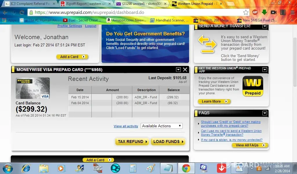 On 2/27/14 I spoke with at length to a Western Union agent by the name of "Whitney" explaining yet again EVERYTHING that happened to me and my $200 refund charge back request. Most of the time I was placed on hold. "Whitney" than transferred me over to "Angel" who promptly hung up on me after he asked if I had the Meta Bank denied claim form. I told him yes but not on me presently. About twenty minutes later after going their account verification process I let out a volley of anger on a Western Union agent which I covertly recorded informing the agent that I was taking this matter up with the FBI, Interpol and Scotland yard and that is what I have done.