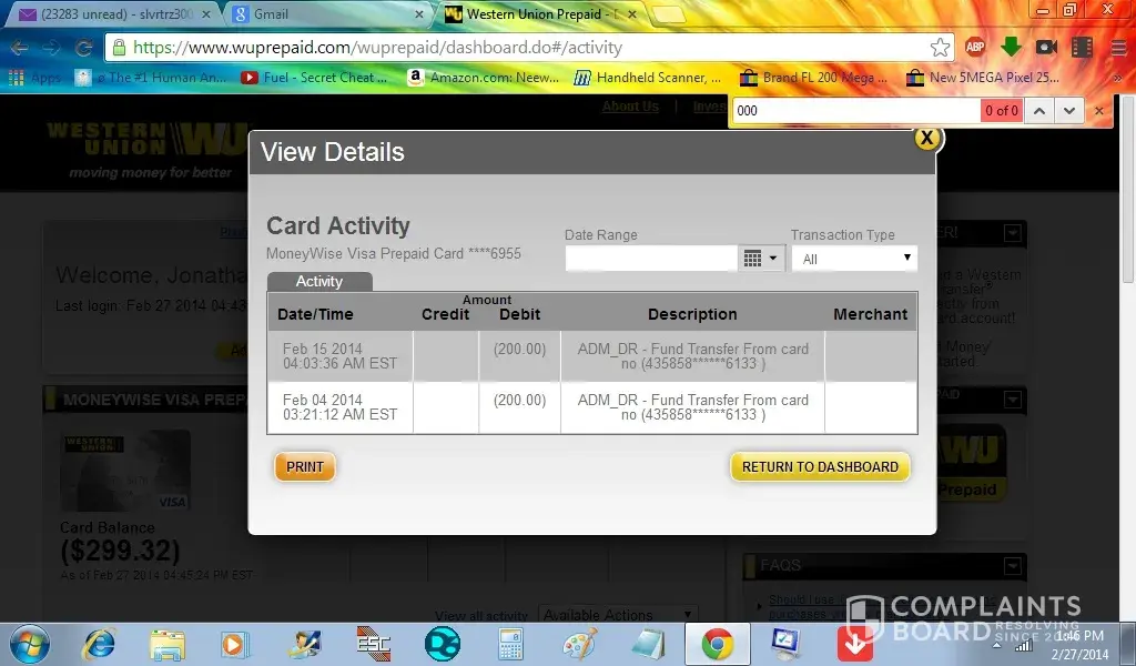 My old January 2014 Western Union card expired and I had a new one ready to be activated which was valid for another two years. The Western Union CSR Liz strongly suggested that I have the new January 10th 2014 card canceled so they could send me another new one. The second new one took five weeks to get to me. On February 19th 2014, 41 days later I discovered that Go Options.com had accessed and illegally charged my old Western Union card numbers 6133 twice for the amounts of $200 each on February 4th and the 15th of this year. Keep in mind that I had no idea that this happened because I did not have a active Western Union card because I had to wait for the new one. I was floored. I had a WTF? moment than. I waited several weeks to see what the Meta Bank and Western Union determination was going to be.I made frequent/multiple phone calls over almost seven weeks trying to get updates. Finally an agent by the name of "Daniel" (fake name?) advised me 2/25/14 that Meta Bank had ruled against me regarding a $200 charge back due to my claim not being sufficent enough even though I sent enough screenshots, my bad experience and the bad experience of others by letter to Western Union in dealing with GoOptions.