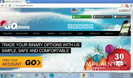 I thought to myself that I could easily do this and enjoy making some extra money so I signed up on the ABS site and followed the instructions. Roger Pierce and his website team encouraged me to sign up on a Binary Options site called GoOptions.com as a highly rated and trusted website to conduct business with. So I did just that. I signed up for a Go Options membership and on December 6th 2013 I had a $200 direct deposit transfer over to my new account with them. On that day I tried my hand at one $25 dollar gold trade and three $5.00 international currency pairs. The total amount that I lost that day was around $40 with a balance of $160. Not wanting to lose anymore funds I stopped what I was doing, logged out and proceeded to go about my daily life. The next time I was online I decided to investigate the worthiness of GoOptions and see how how others were being treated by them. Well lo and behold I did indeed find some dirt on them. Customers had various complaints about them ranging from profit withdrawal difficulties to ignored emails to getting account lockouts.