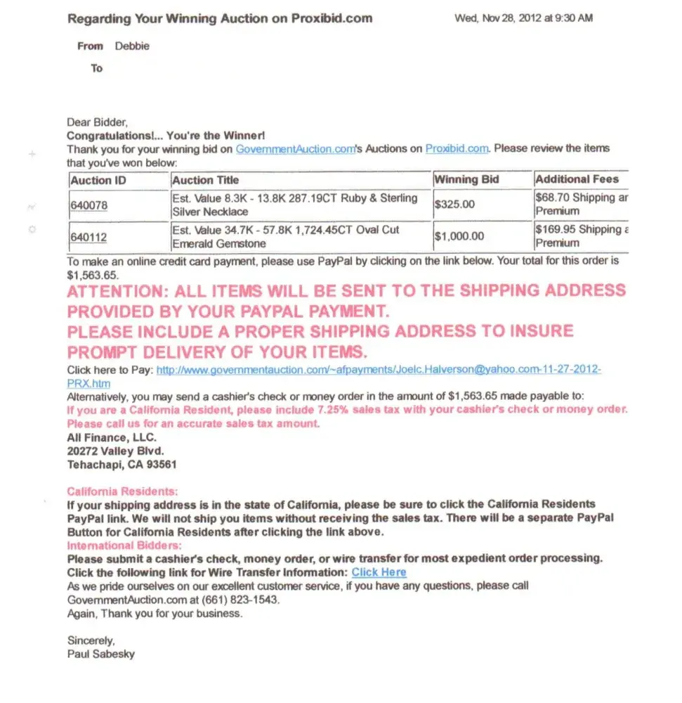 I purchased a gold coin from governmentauction.com on july 11th 2021, I was told the coin was in great condition, rare and a great investment. Looking at the picture on the invoice, I called and asked why the invoice didn't say whether the coin was uncirculated or not. On july 16 I received the coin via fedex, I was very disappointed to say the least, not only was the coin damaged, but it had chunks missing, I immediately called and left over three messages on voicemail, no one answered so I returned the coin via ups signature required. I called on july 23rd and again spoke to ashley she said they never received the coin back, but changed her story when I told her I had proof the coin was delivered and signed for on july 21st. She called me a couple of days later and said they never received the coin, and instead received 4 quarters. Ik asked her to send pictures to which she replied they didn't have any, then she sent me photos showing a bag and four quarters. What a fraud!
