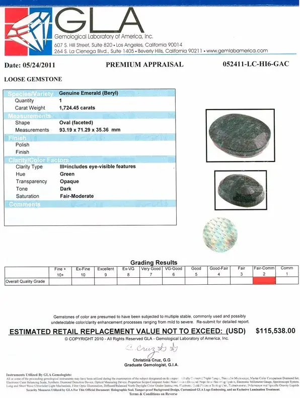 governmentauction.com As to the claims reported with Certified product. These items are fraudulent and are junk. If GLA is certified they would know that these items are clearly not of gem quality and are worthless. I took these to a Gemologist to have appraised they basically told me this is fraudulent certificate even for insurance purposes, as if for...