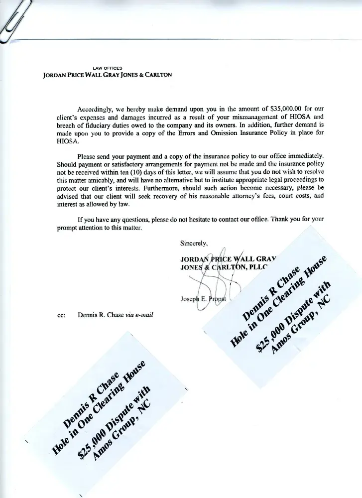 Dennis Chase is a drunken liar and just a simple horrendous businessman. He Has scammed countless others out of many 1000's of dollars. See the $150, 000 Chicago Scam. The $45, 000 TNA of Georgia Car Dealer Scam. See The Hole in One Insurance reviews of his company screwing up in North Carolina Connecticut Colorado.