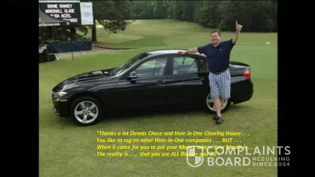 Besides NOT Paying for a legitimate Hole in One . . .Dennis Chase Hole in One Clearing House has a history of foul up non payments $200k Chicago $50K Denver. Now teams up with GTAA Golf Tournament Association of America Arizona . . . my personal business dealings was that he absconded with ALMOST ALL a company start up funds that I got involved with AND Stole dedicated funds for a dealership. This company dissolved within 60 days due to Hole in One Clearing house Dennis Chase misappropriating the monies Do not get involved with these companies AND Associates of
