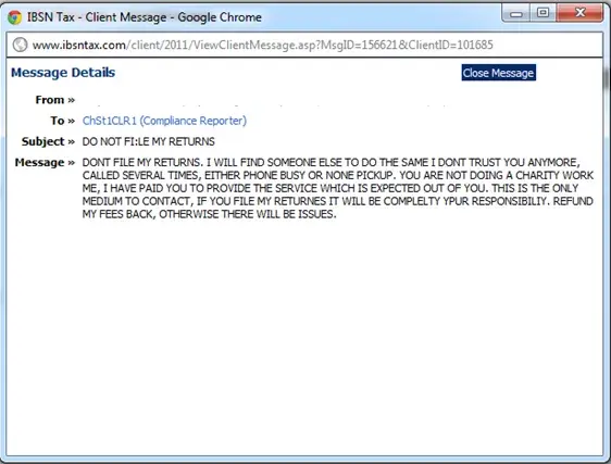 So my suggestion / request is never get your tax refund filed from IBSN.