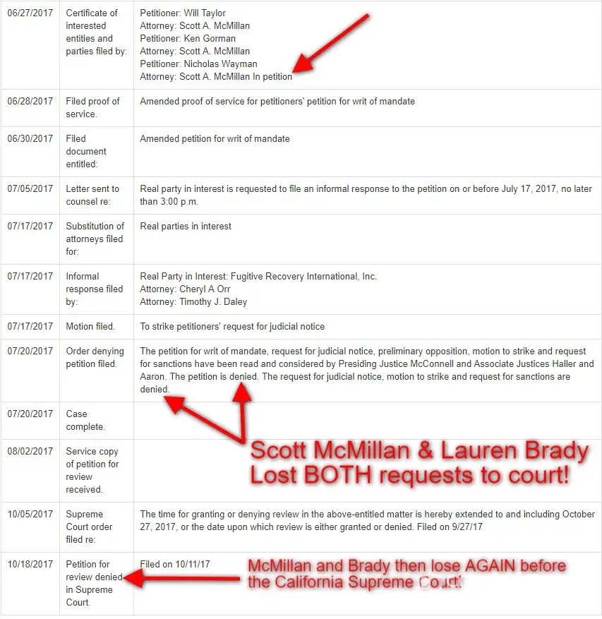 For example, in 2017 scott mcmillan los a major lawsuit where he tried to have a report naming him in a child molestation investigation removed from the internet. Scott mcmillan also asked the federal court to remove numerous links to be deindexed. The federal court dismissed the lawsuit and literally laughed at scott mcmillan in court during the hearing.