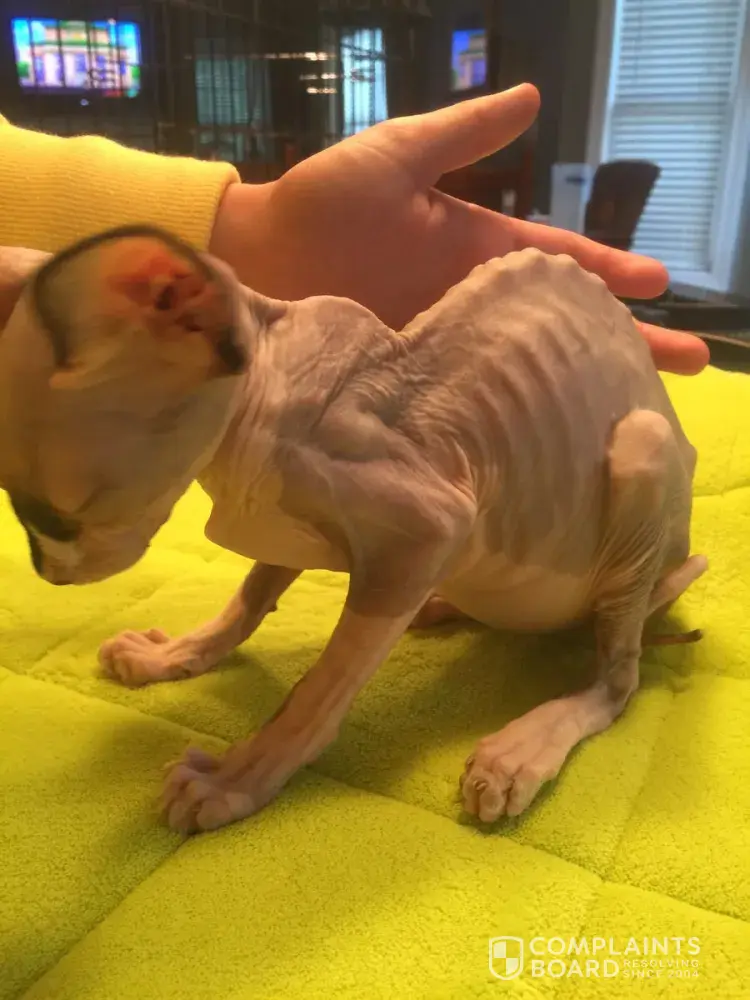 I am the owner of the sick cat (Mira) that was sent to us by Lilnudists cattery / April Arguin / Kristin Herstine. When the cat was sent to me, she was small, however she was a baby and was told she came with a clean bill of health from their vet. When she arrived, she would not eat the Raw food that April told me she was being fed the whole time, this cat would not touch it and would only eat canned food. She would eat 2 large cans of food a day. As time progressed, the cat started becoming lethergic and losing weight very quickly (we had her just over a month). I notified April as soon as I noticed something was wrong and took her to the veterinary hospital here in Virginia Beach, VA. The Vet at the ER who also used to own a Sphynx, came in and evaluated her. After looking at her, she removed a vial of yellow fluid from Mira's abdomen. The Vet said that this was THE telling sign that the cat had what is known as WET FIP, which is almost always fatal in cats and comes from households/catteries with more than 5 cats and is a mutation of the corona virus that many cats carry (I do not have any other pets). The vet wanted to send out the test. I immediately called April and informed her of the situation. April demanded that I do not send out the test, because the vet didn't known anything and wanted to speak to the vet directly. April told the vet that her cattery had an outbreak of Garadia not long ago and wanted the vet to giver her medicine for worms, and antibiotics. The vet did not think this was the case, however after April argued with the vet, the vet gave her what she wanted. The vet was only going to give the cat prednisone to make her more comfortable. April then demanded that I return the cat to them to be nursed back to health. I took time off work the next day to drive the cat to their breeder in Northern Virginia. After driving 5 hours to meet up with theother breeder Jayme DesDunes, the cat was rudely SNATCHED out of my hands as we were saying goodbye to her and Jayme sped off quickly.