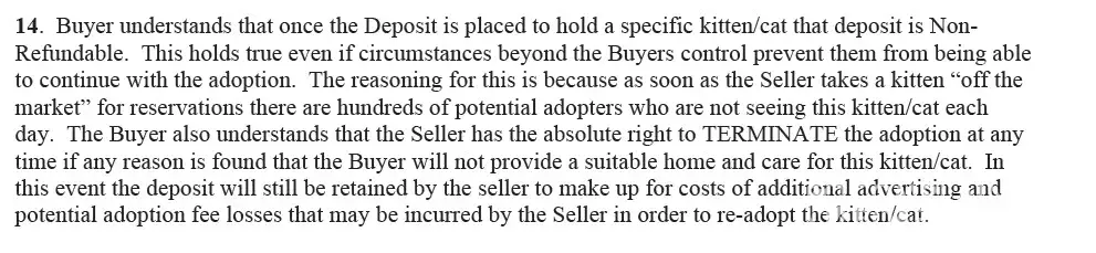 There are times when adopters cannot follow through with an adoption for reasons beyond their control, and even in those circumstances we do not refund deposits once a kitten has been held for any length of time, however we offer to them to adopt from us and the deposit will apply to a different kitten in the future when they are able to adopt. This could have been an option for this family as well, but they would not agree to anything except a full refund. These adopters were very criticizing and completely un-willing to be reasonable about the situation and they are now slandering us all over social media and posting negative reviews everywhere they can find.