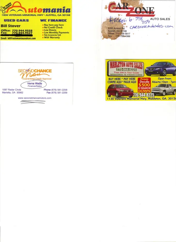 They say that "hind site is 20/20", and this has been an experience that proves that to be So true. Mableton Auto Sales should not have the right to call themselves a business. They are a family of con artist posing to be a legitiment business. Upon missing 1 biweekly payment and the next biweekly payment, coming due. Mableton Auto Sales deemed it necessary to not call me, or to not email or send a letter concerning payment. But to unlawfully repossess my vehicle in the middle of the day, in the middle of downtown ATL., and to then have the ordasity to say that they did what "they" were told to do. "They" being a little "girl" by the name of Fatima and another "little girl named "Rosa" (and use girls loosely). Upon asking to speak with the manager/owner, I have been given the run around about "who" the heck he or she may even be! I was given the name Dell or Dale, with no last name. And was told that he would give me a call back otherwise they had no information regarding proof or funds received nor would accept any of my docs. I am MORE than "T'd Off" for a lack of a better term. And now knowing what kind of scammers these people really are. I am more than willing to invest the time and money necessary to sue their $%^##! It is 2010, and enough is enough. Everything I've currently read and heard about this company is absolutely true. Please spread the word, that Mableton Auto Sales and Flamingo Sales are both G A R B A G E.