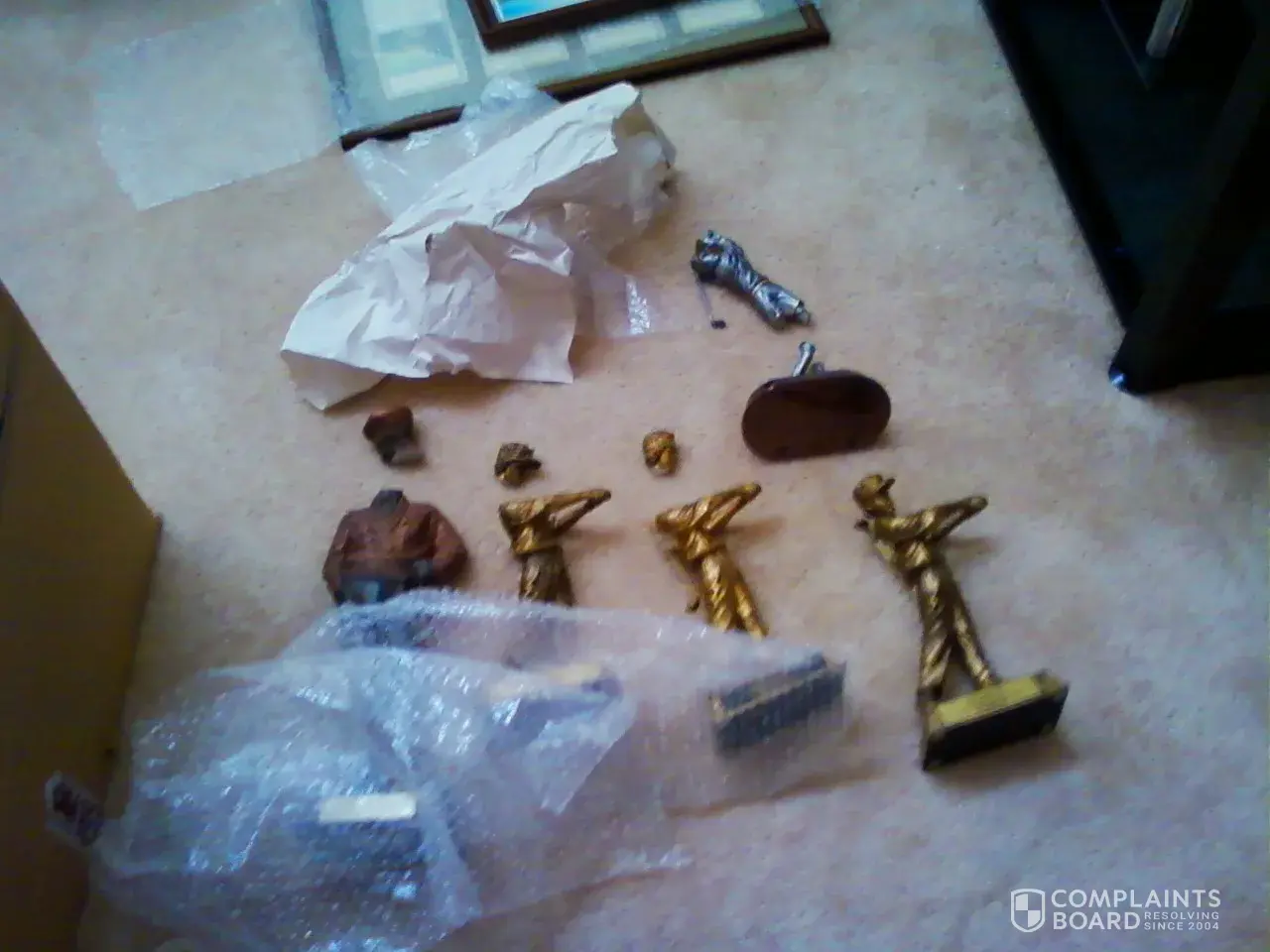 WE HAD 6 TABLES BROKEN, LEATHER SOFAS BROKEN, BEDS DESTROYED, AT LEAST 50 ITEMS BROKEN THAT WERE LABELED IN "FRAGILE" BOXES". THE PICTURES ARE OUTSTANDING IF YOU EVER WANT TO SEE THEM.