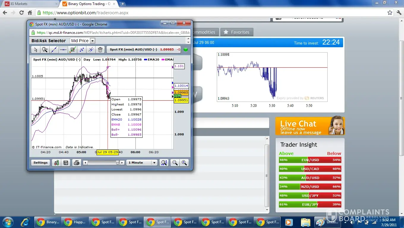Please check how a winning position was made to lose( sharp spikes generated) ..closing price at 5:30 was 1.0996 and optionbit system manipulated to show this as 1.1006..thats a 10 Pips difference... I have sent the mails to OptionBit Account Manager.. Awaiting his response... Shall keep the bigger currency trading community updated with their action..