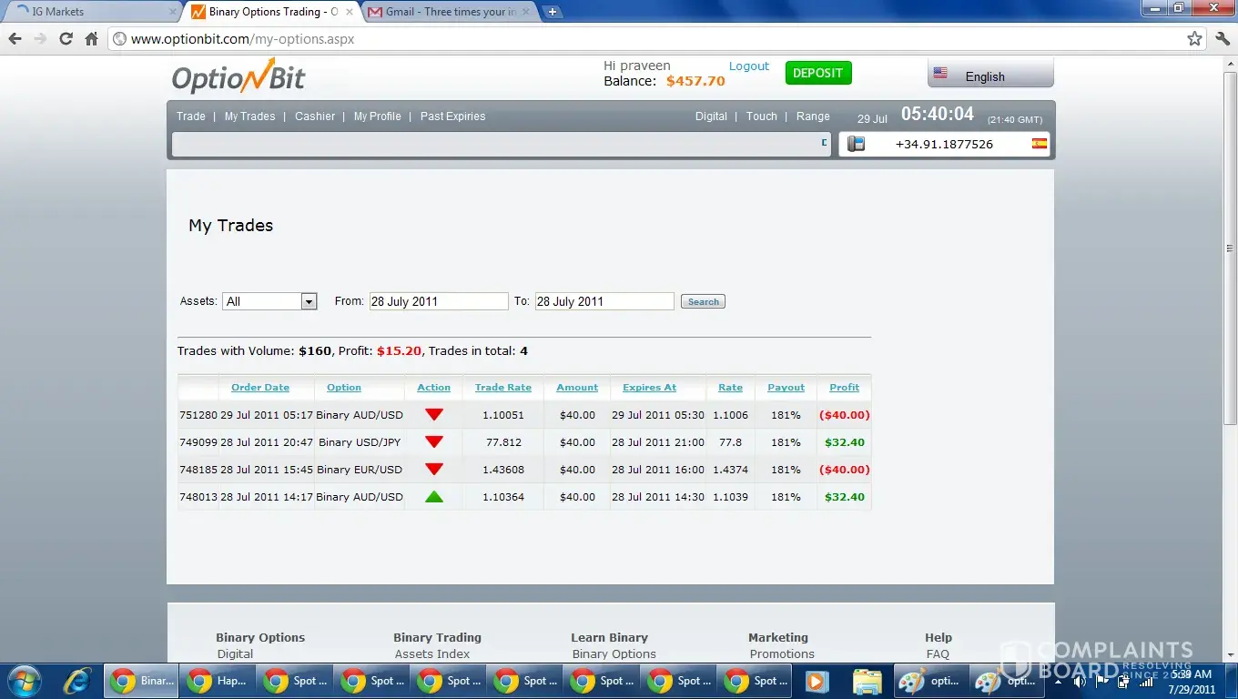I am Praveen from Singapore and would like to bring into notice of Currency Trader community about the flaw in the trading platform of OptionBit System and you can see the same with the attached files.. How their system makes customer position lose and is in opposite to what the system shows from reputated systems like igmarket, fxstreet, Finviz..