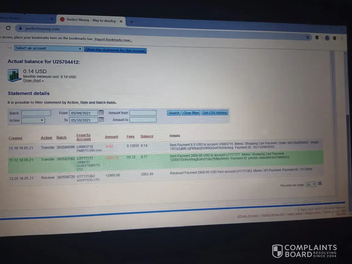 $2800 was transferred from my perfect money account to orbest investments ltd without my knowledge, I later received a mail saying my identity check was being disabled.